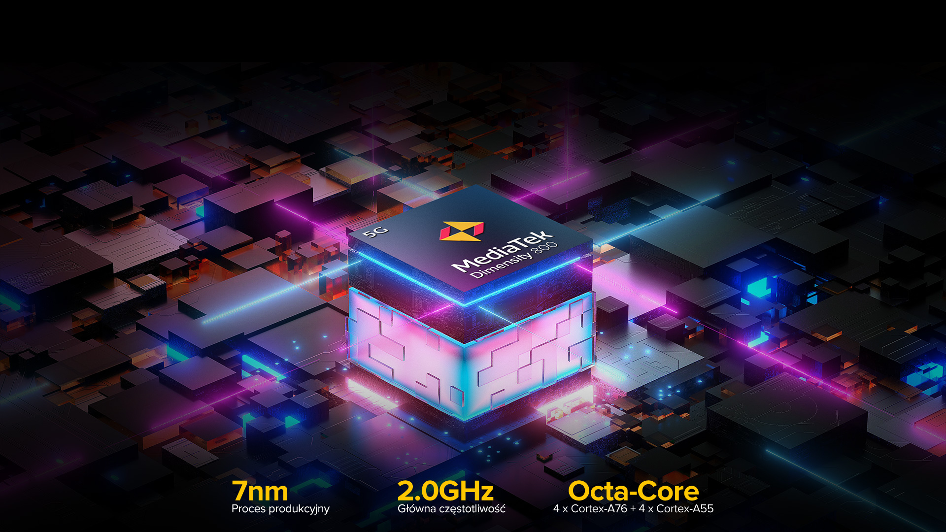 Doświadcz ultraszybkiej prędkości dzięki w pełni zintegrowanemu SoC 5G, chipsetowi MediaTek Dimensity 800 5G. Dzięki flagowej technologii procesowej 7nm i potężnej architekturze CPU, Ulefone Armor 11T 5G osiąga wysoką wydajność, niskie zużycie energii i płynność systemu. Wyposażony w wysokiej klasy układ GPU Arm Mali-G57 MC4 z MediaTek HyperEngine 2.0, zapewni Ci najlepsze wrażenia w grach oraz wysoką jakość obrazu.