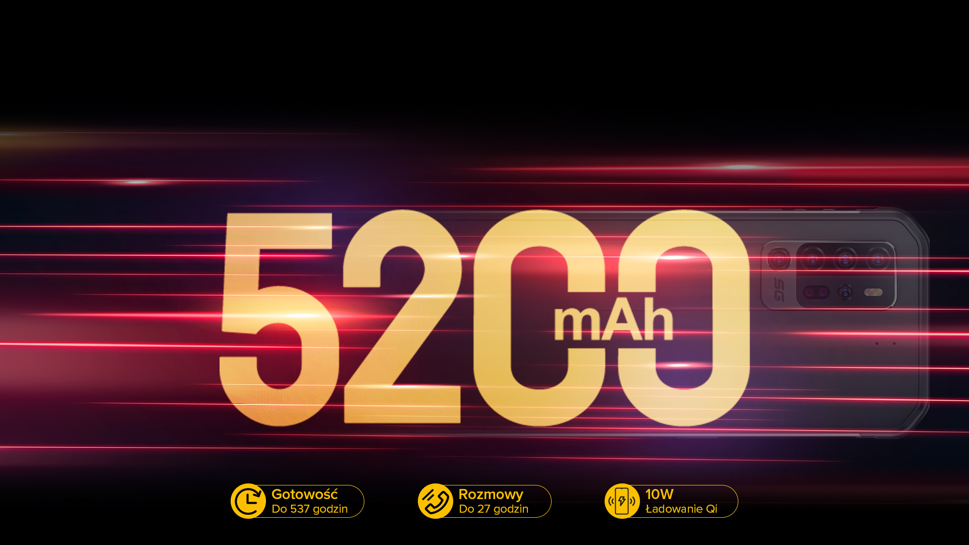 Dzięki potężnej baterii o pojemności 5200 mAh i wydajnemu procesorowi, Armor 11T 5G wytrzymuje długie godziny pracy, rozrywki i wyjazdów, bez żadnych przerw. W porównaniu z innymi smartfonami 5G, to urządzenie może bez żadnych problemów utrzymywać 5G w stanie gotowości przez cały dzień. Poszukiwacze przygód/profesjonaliści nie muszą się już martwić o wyczerpanie baterii podczas eksploracji/pracy na łonie natury.