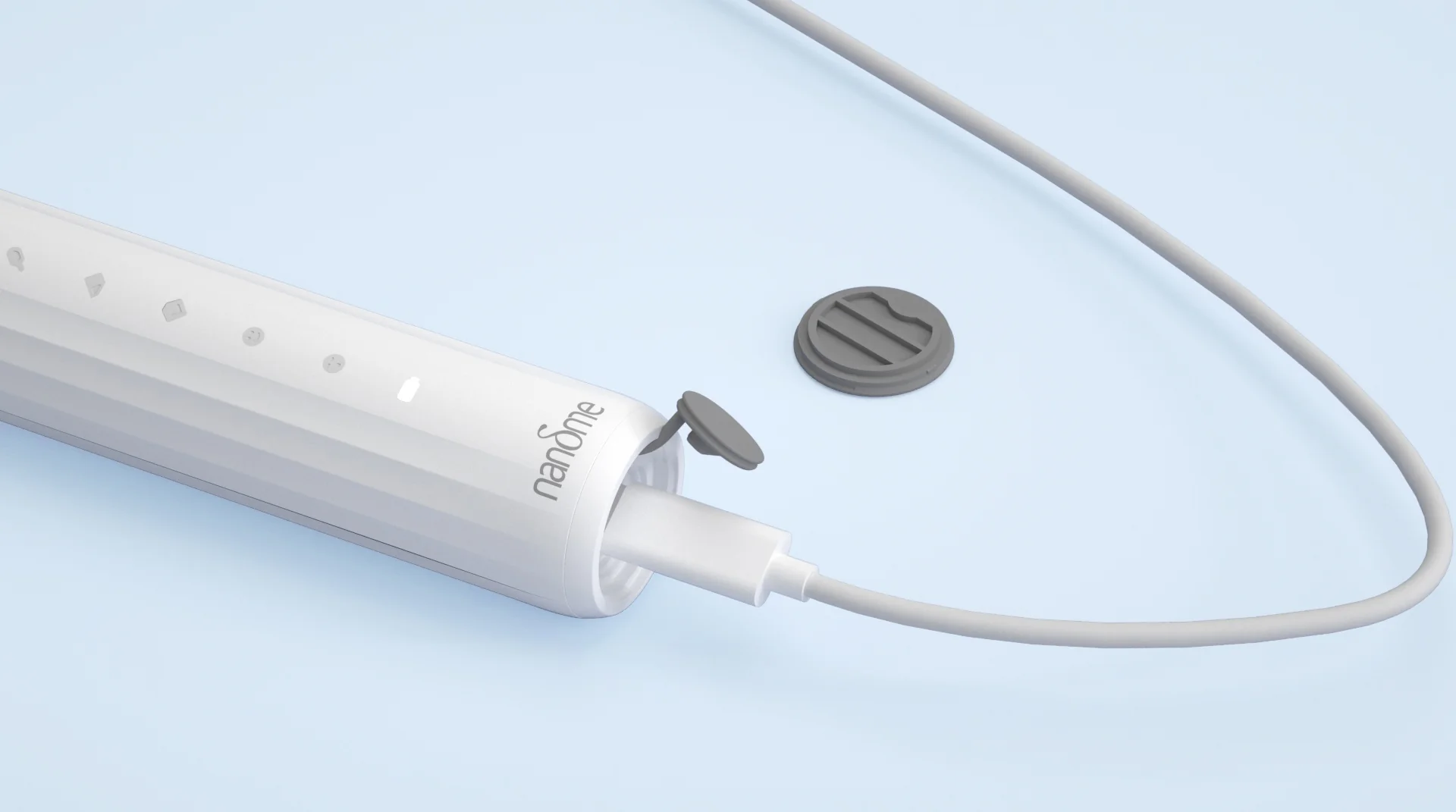 Szczoteczka posiada wbudowany akumulator o dużej pojemności 2600 mAh, który zapewnia długą żywotność aż do 365 dni. Ładowanie odbywa się za pomocą dołączonego do zestawu przewodu USB.