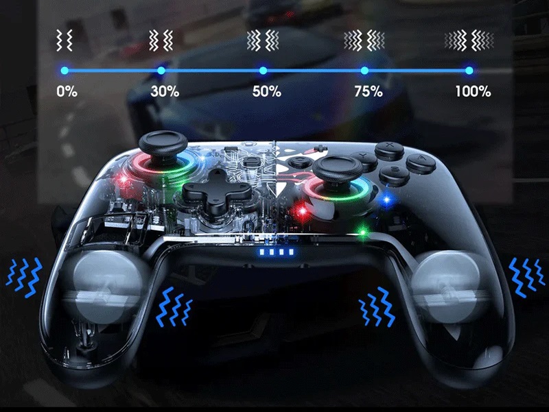 Podwójny silnik wibracyjny pozwala uzyskać najbardziej realistyczne wrażenia z gier. Moc wibracji można swobodnie regulować.