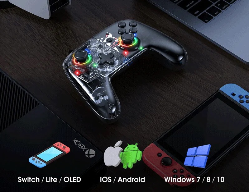 Kontroler jest kompatybilny z konsolą Nintendo Switch Pro/Lite, telefonami z systemem Android / iOS i komputerami PC z systemem Windows.