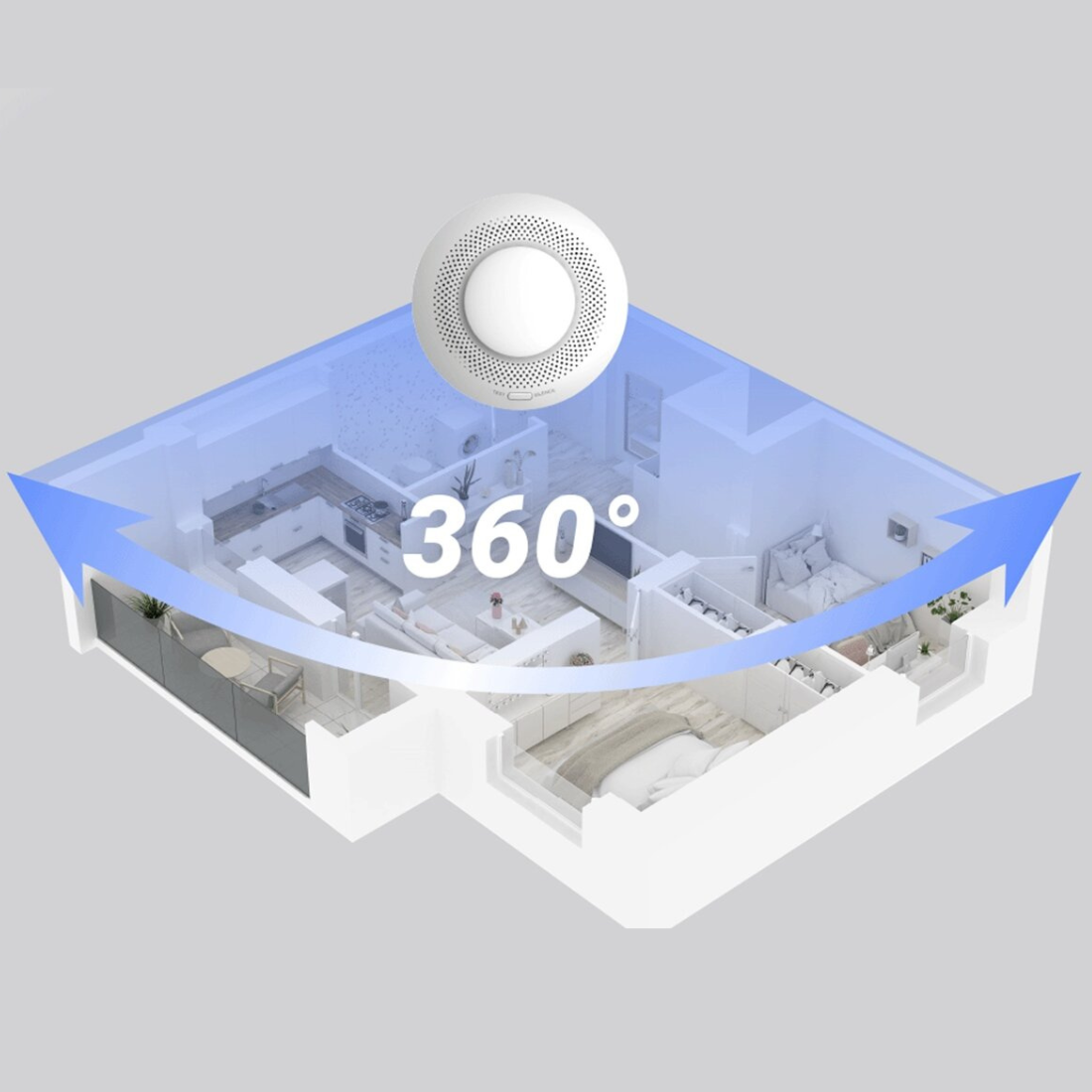 Pomimo kompaktowych wymiarów, czujnik T4C monitoruje otoczenie w zakresie pełnych 360 stopni. Taka konstrukcja pozwala skutecznie zabezpieczyć większe powierzchnie i minimalizuje ryzyko powstawania martwych stref. EZVIZ T4C współpracuje z systemem EZVIZ Smart Home po podłączeniu do bramki A3. Umożliwia to rozbudowę instalacji nawet do 32 urządzeń, w tym czujników ruchu, otwarcia drzwi i okien, innych czujników dymu, przycisków alarmowych i innych. Wszystkie urządzenia są obsługiwane z poziomu jednej aplikacji mobilnej EZVIZ na systemach Android i iOS. Po sparowaniu czujnika z kamerą EZVIZ w aplikacji, wykrycie dymu może automatycznie uruchomić nagrywanie krótkiego filmu. Takie rozwiązanie ułatwia ocenę sytuacji i podjęcie decyzji o dalszych działaniach.