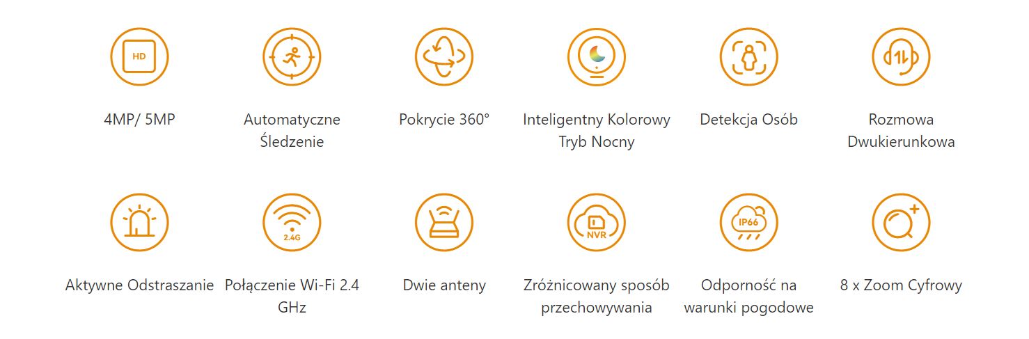 Dzięki obrotowi 360 stopni i pochyleniu, kamera obejmuje każdy zakątek Twojej posesji. Funkcje namierzania i śledzenia ruchu automatycznie monitorują poruszające się obiekty, co eliminuje martwe punkty i zwiększa bezpieczeństwo.