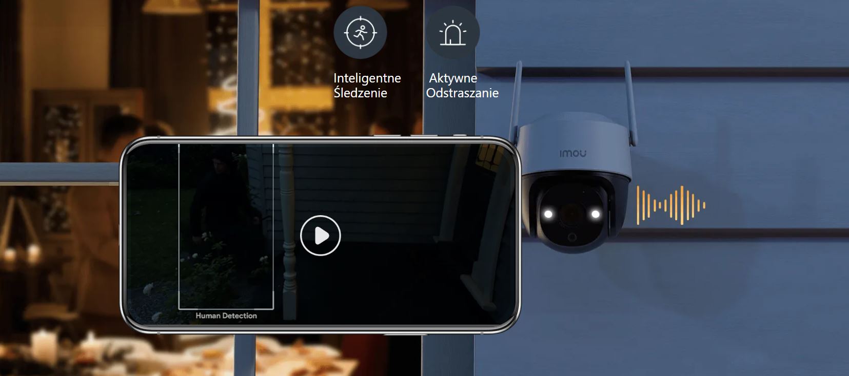 Kamera zewnętrzna IMOU Cruiser SE+ oferuje pełne pokrycie monitorowanego obszaru dzięki funkcjom obrotu, pochylenia, namierzania i śledzenia. Obrót 360 stopni i pochylenie pozwalają uchwycić każdy zakątek, eliminując martwe strefy. Namierzanie i śledzenie ruchu zapewniają ciągły monitoring poruszających się obiektów. To zwiększa bezpieczeństwo Twojej posesji, zapewniając pełną ochronę. Intuicyjna aplikacja mobilna umożliwia łatwe sterowanie kamerą z dowolnego miejsca, gwarantując niezawodną ochronę przez całą dobę, niezależnie od warunków pogodowych.