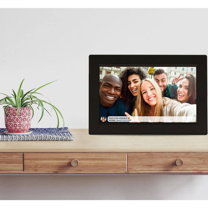 Ramka jest wyposażona w moduł Wi-Fi, który umożliwia przesyłanie zdjęć i filmów prosto ze swojego smartfona lub innego urządzenia bezpośrednio na ekran ramki. To świetna opcja, aby łatwo dzielić się swoimi wspomnieniami z rodziną i przyjaciółmi.