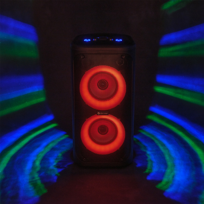 Denver TSP-353 posiada dynamiczne podświetlenie LED wokół głośników oraz na bokach, z siedmioma trybami świetlnymi w różnych kolorach, co tworzy niesamowitą atmosferę. Dodatkowo, funkcja TWS (True Wireless Stereo) pozwala na sparowanie dwóch głośników, aby uzyskać efekt stereo, co jeszcze bardziej wzmacnia doznania dźwiękowe.