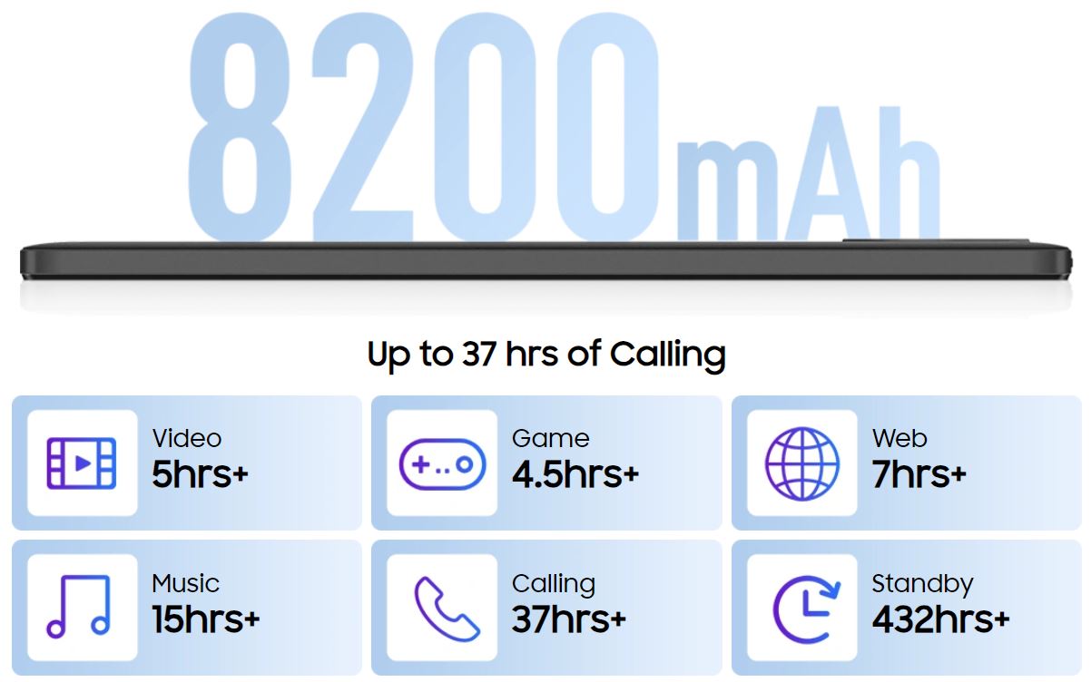 Tablet Blackview wyróżnia się dużą baterią o pojemności 8200 mAh, która zapewnia długotrwałe użytkowanie bez konieczności częstego ładowania. Dzięki temu, oraz funkcji szybkiego ładowania 10W, urządzenie idealnie sprawdza się podczas długich podróży, intensywnego korzystania z multimediów oraz pracy mobilnej.