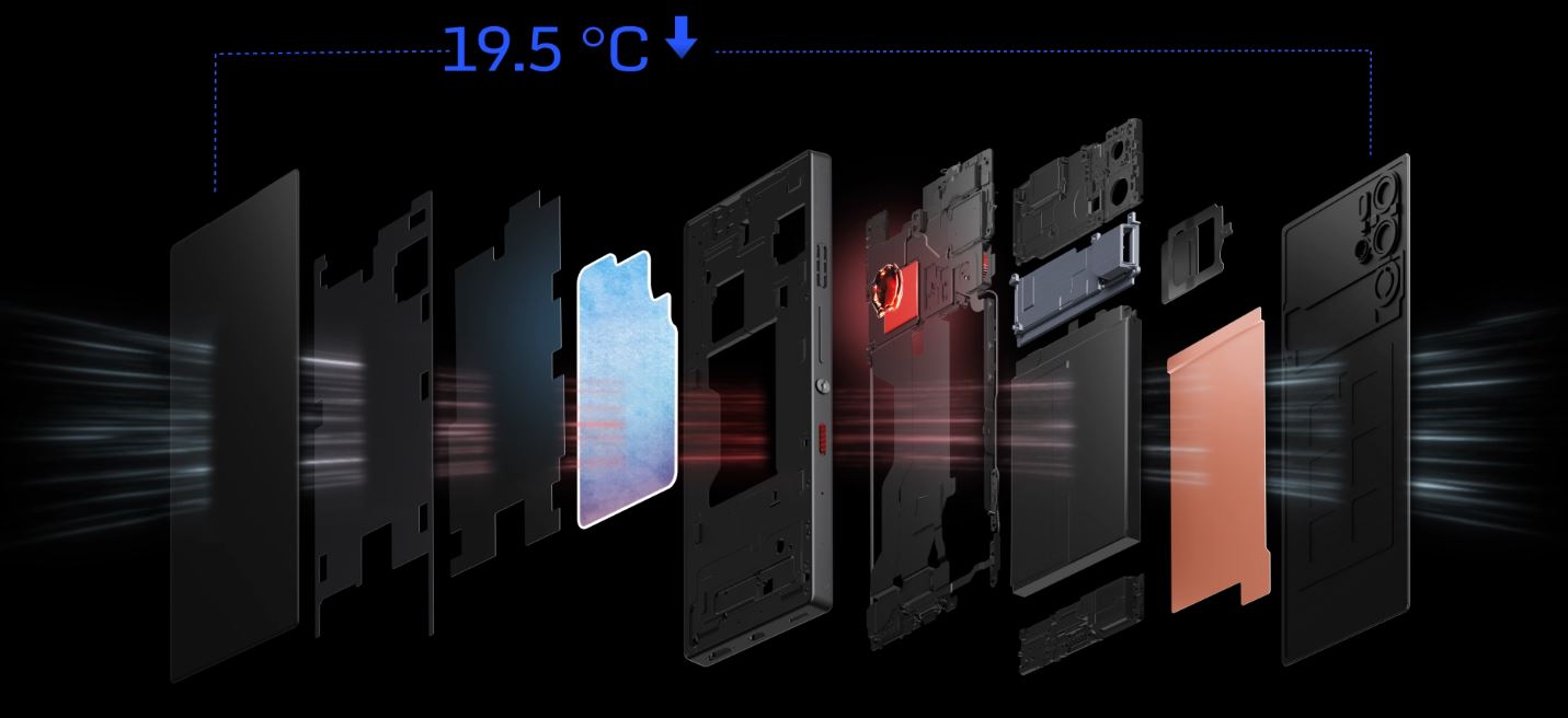 Wysoka wydajność wymaga zaawansowanego systemu chłodzenia, a Redmagic 9S Pro dostarcza w tej kwestii perfekcję. Zastosowany system ICE 13.5 wykorzystuje 10 warstw chłodzenia, w tym wentylator obracający się z prędkością 22,000 RPM. Dzięki temu urządzenie utrzymuje stabilną temperaturę nawet podczas długich sesji gamingowych, zapewniając płynność działania i eliminując problemy z przegrzewaniem.
