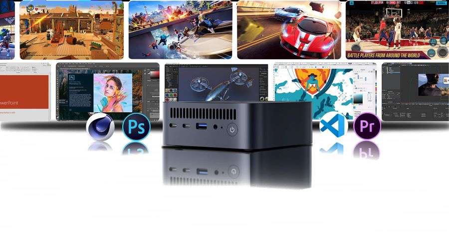 Mini PC Blackview wyposażony jest w imponujący zestaw 10 portów, umożliwiających jednoczesne podłączenie wielu urządzeń, takich jak monitory, urządzenia USB, połączenia sieciowe i interfejsy audio. Bez względu na to, czy tworzysz domowe biuro, centrum multimedialne czy stację gamingową.