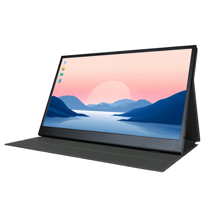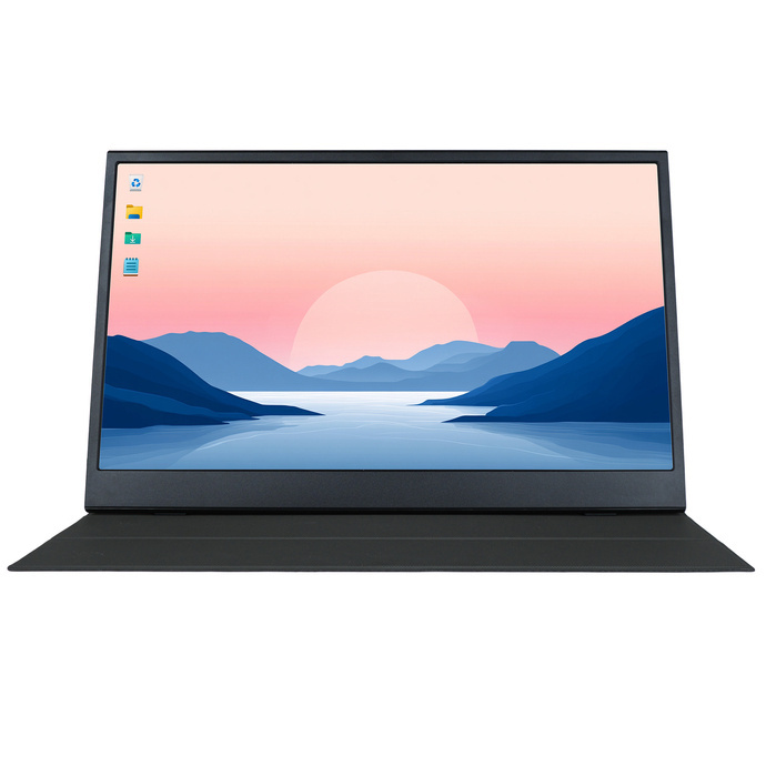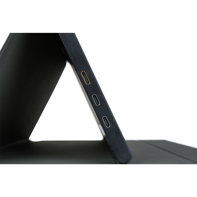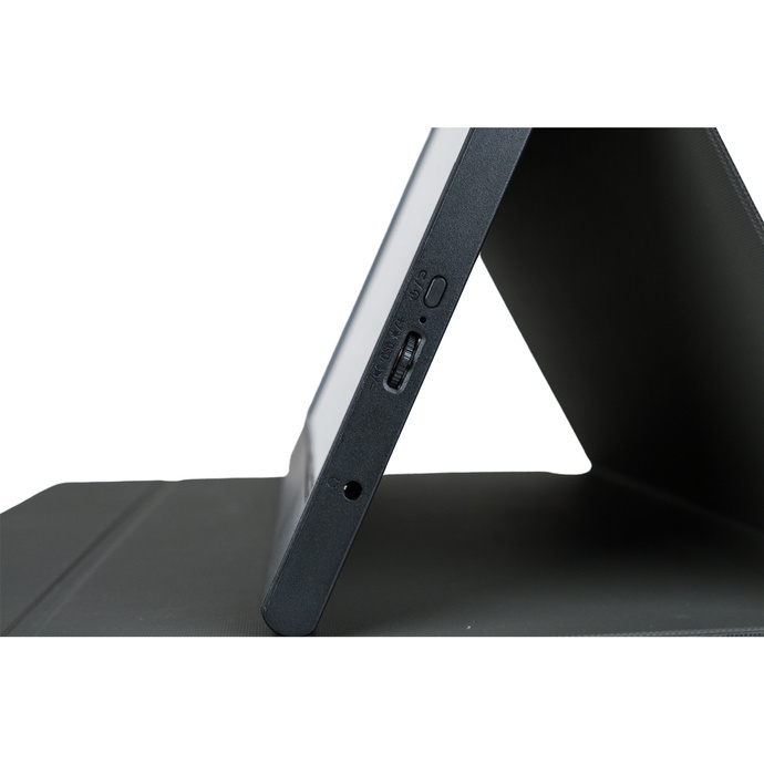 Monitor Denver PMO-15602 waży niewiele i posiada elegancką czarną okładkę z magnetyczną klapką, która pełni funkcję praktycznej podstawki. Całość zamknięta jest w lekkiej obudowie z tworzywa sztucznego, a tylny panel zawiera otwory montażowe VESA 75x75, umożliwiające przymocowanie monitora do ściany (uchwyt nie jest dołączony).
