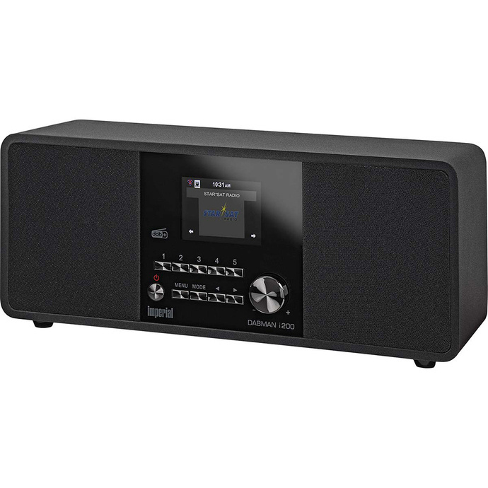 Imperial DABMAN i200 to radio zaprojektowane z myślą o komfortowej obsłudze i eleganckim wyglądzie. Wbudowane głośniki stereo umieszczone na froncie zapewniają czysty, dynamiczny dźwięk, a ich symetryczny układ pozwala na równomierne rozprzestrzenianie się dźwięku. Na przednim panelu urządzenia umieszczono czytelny wyświetlacz LCD, który wyświetla aktualne informacje, takie jak stacja radiowa, ustawienia czy godzina. Intuicyjne przyciski sterujące oraz ergonomiczne pokrętło głośności pozwalają użytkownikowi na łatwą i wygodną obsługę. Dodatkowo do sterowania można używać pilota.