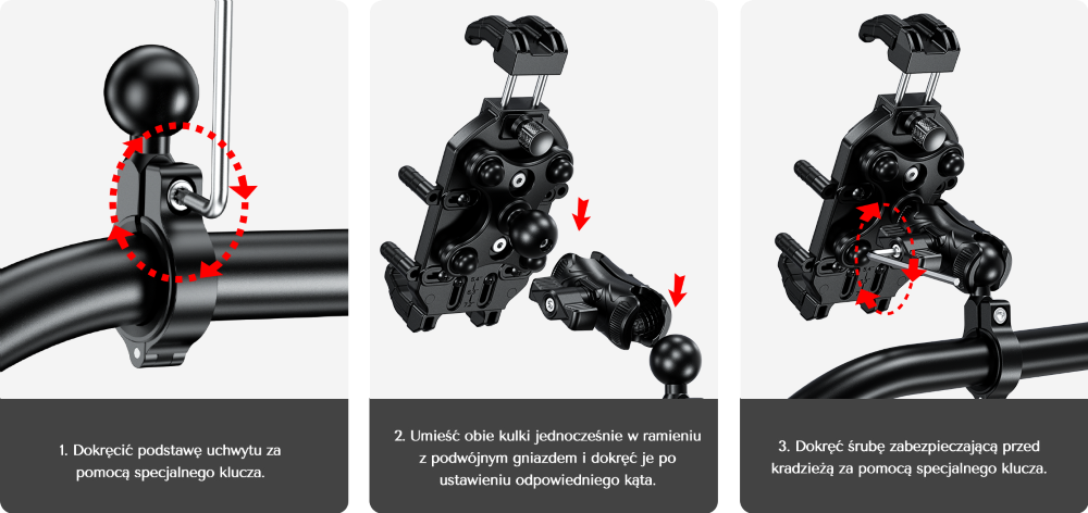 Montaż uchwytu jest bardzo prosty i wymaga jedynie 3 kroków