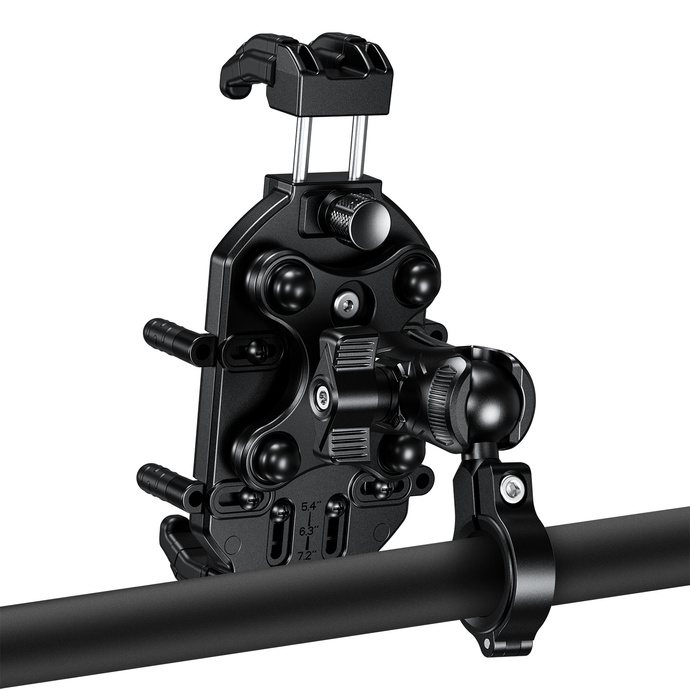 Armor Mount Pro jest kompatybilny z telefonami o przekątnej od 5,4 cala do 7,2 cala, w tym także z telefonami w etui. Jego szerokość i długość można regulować za pomocą bocznych zacisków.