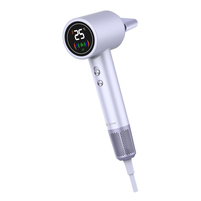 Denver HDD-1400DGR to wysokowydajna suszarka do włosów z bezszczotkowym silnikiem o mocy 1400W. Dzięki niskiemu poziomowi hałasu zapewnia komfortowe użytkowanie bez nadmiernego hałasu, co sprawia, że suszenie włosów staje się bardziej przyjemne.
