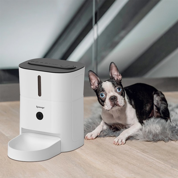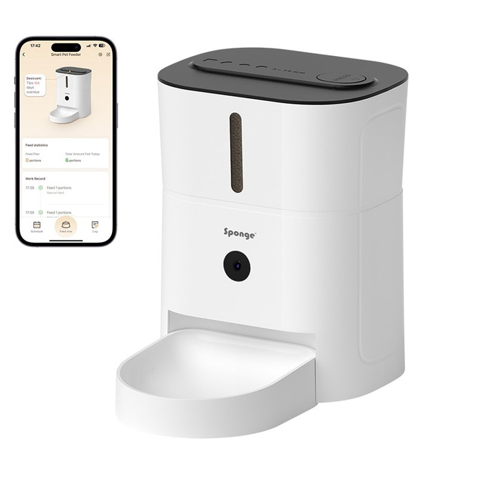 Inteligentny dozownik karmy Sponge Pet Feeder Smart z kamerą to nowoczesne urządzenie stworzone z myślą o właścicielach kotów i średnich psów, którzy chcą zadbać o regularne i zdrowe karmienie swojego pupila. Zautomatyzowany system podawania posiłków, sterowany za pomocą aplikacji mobilnej, pozwala na pełną kontrolę harmonogramu i porcji. Wbudowana kamera HD umożliwia podgląd w czasie rzeczywistym, a funkcja głosowa sprawia, że zwierzak usłyszy znajome zawołanie przy każdym posiłku.