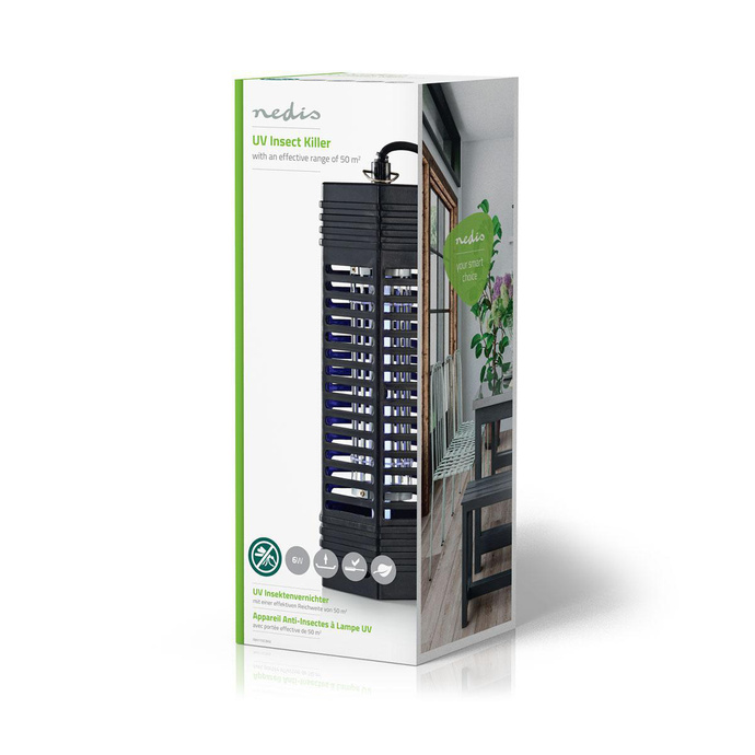 Lampa owadobójcza Nedis 6W to ekologiczne i nietoksyczne rozwiązanie do eliminacji komarów, much, os i innych uciążliwych owadów. Wykorzystuje jedną energooszczędną lampę UV-A o mocy 6 W, która skutecznie przyciąga owady, a następnie eliminuje je przy kontakcie z wewnętrzną siatką pod wysokim napięciem. Brak zastosowania chemikaliów sprawia, że urządzenie jest bezpieczne zarówno dla ludzi, jak i środowiska.