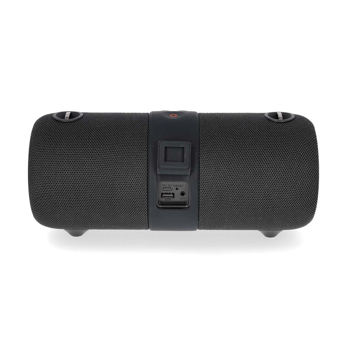 Urządzenie zostało wykończone elegancką, plecioną tkaniną, która nadaje mu nowoczesny i premium charakter. Wbudowane dynamiczne diody RGB LED rozświetlają otoczenie, tworząc imprezową atmosferę dopasowaną do rytmu muzyki.