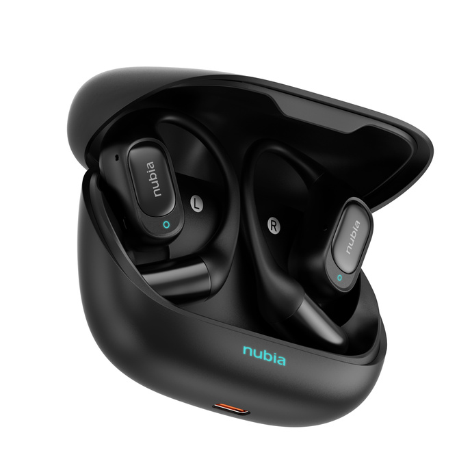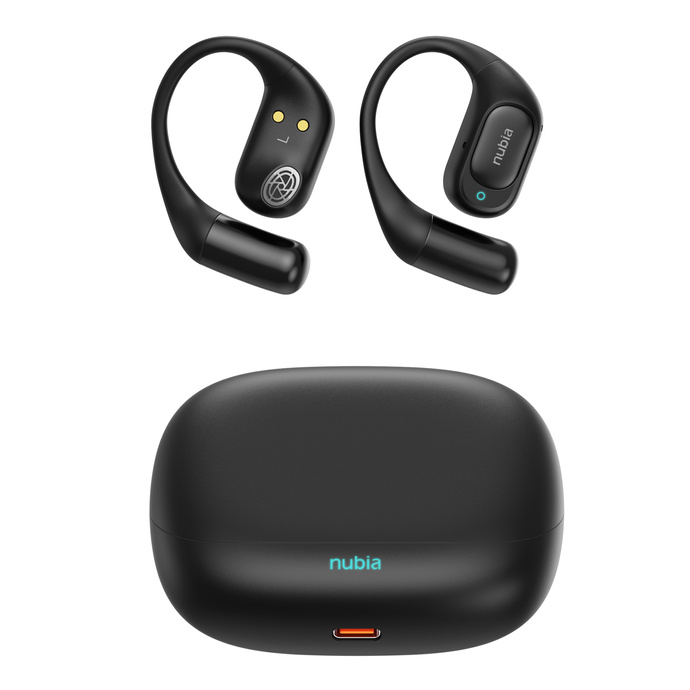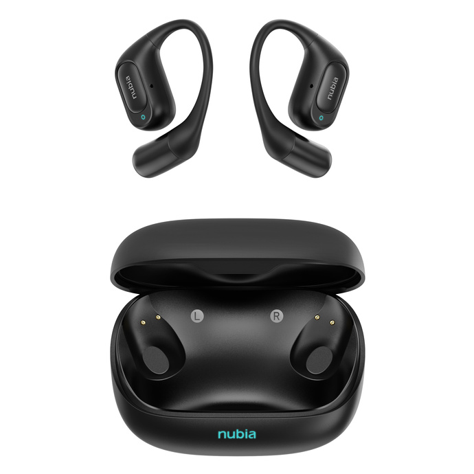 Nubia LiveFlip charakteryzują się otwartą konstrukcją, która nie wchodzi do kanału słuchowego, lecz delikatnie opiera się na małżowinie usznej. Taka budowa zapewnia komfort nawet podczas długotrwałego noszenia oraz pozwala na zachowanie świadomości otoczenia, co jest szczególnie przydatne podczas spacerów czy jazdy na rowerze. Każda słuchawka waży zaledwie 7,6 grama, co dodatkowo zwiększa wygodę użytkowania.