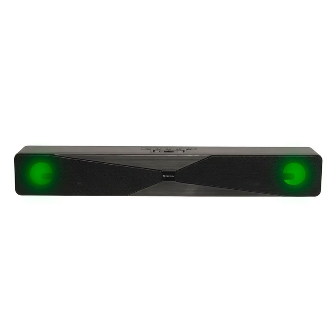 Denver DSB-1011 to kompaktowy mini soundbar Bluetooth z podświetleniem LED, który łączy nowoczesny design z funkcjonalnością. Dzięki mocy RMS 2x5W zapewnia czysty i dynamiczny dźwięk, a kolorowe światła LED w obszarze głośników tworzą wyjątkową atmosferę podczas słuchania muzyki.