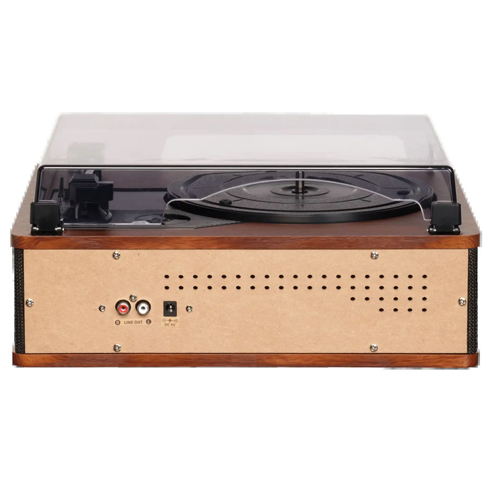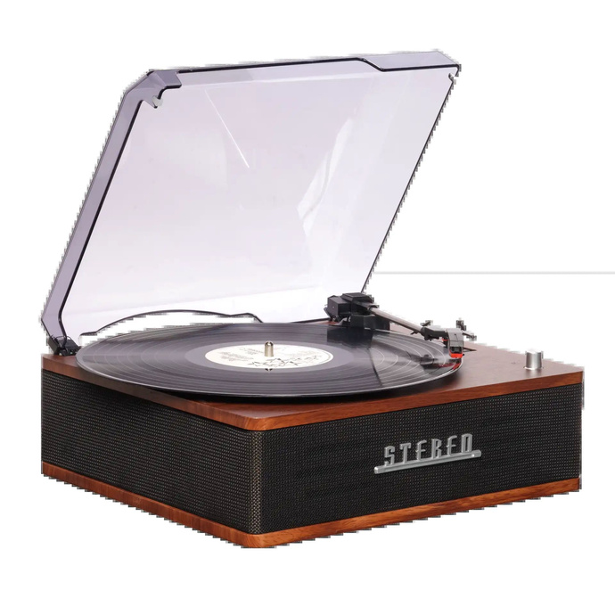 Gramofon obsługuje trzy prędkości obrotowe: 33⅓, 45 oraz 78 RPM, co daje pełną kompatybilność z różnymi formatami płyt. Wyposażony jest w dwa wbudowane głośniki stereo o mocy 20 W (2 × 2 W RMS), które zapewniają czysty i zrównoważony dźwięk bez konieczności podłączania dodatkowego sprzętu audio.