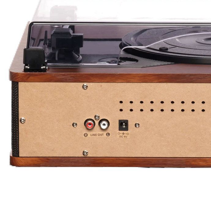 Dla bardziej wymagających użytkowników gramofon posiada wyjście liniowe, które umożliwia podłączenie zewnętrznego wzmacniacza lub systemu audio. Dzięki temu można stworzyć własny zestaw dopasowany do przestrzeni i preferencji brzmieniowych.