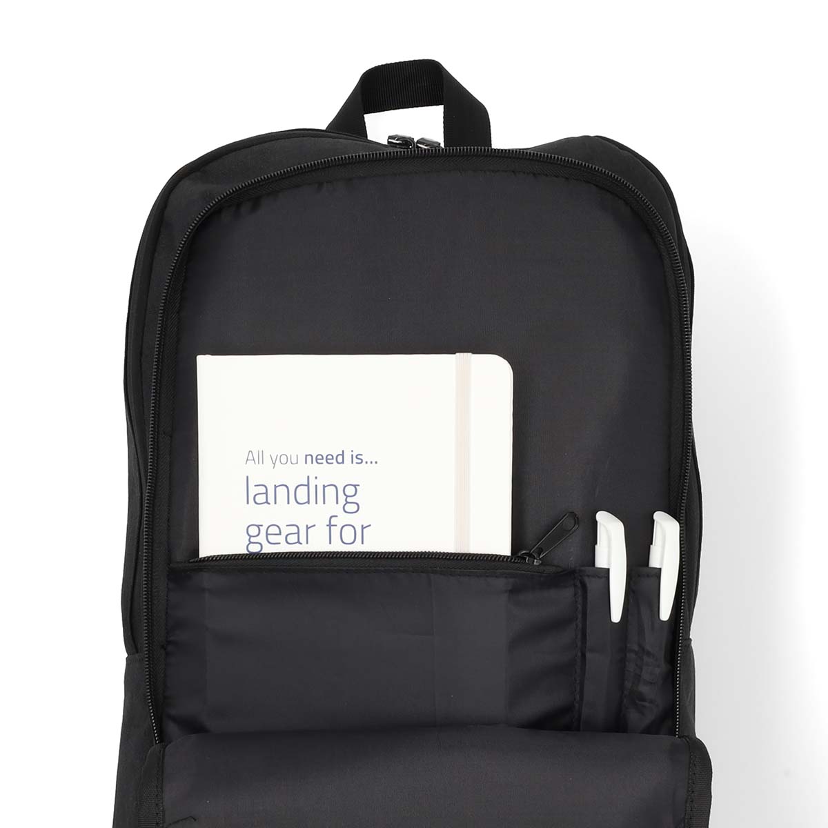 Duża komora główna umożliwia wygodne przechowywanie większych przedmiotów, takich jak ładowarka czy słuchawki. Wewnątrz znajduje się także kieszeń zapinana na zamek, idealna na portfel, oraz pętle na długopisy, które ułatwiają zachowanie porządku. Przednie kieszenie plecaka zostały zaprojektowane z myślą o szybkim dostępie do najczęściej używanych przedmiotów. Jedna z nich sprawdzi się na portfel lub długopisy, natomiast mniejsza kieszeń umożliwia wygodne sięgnięcie po telefon w każdej chwili.