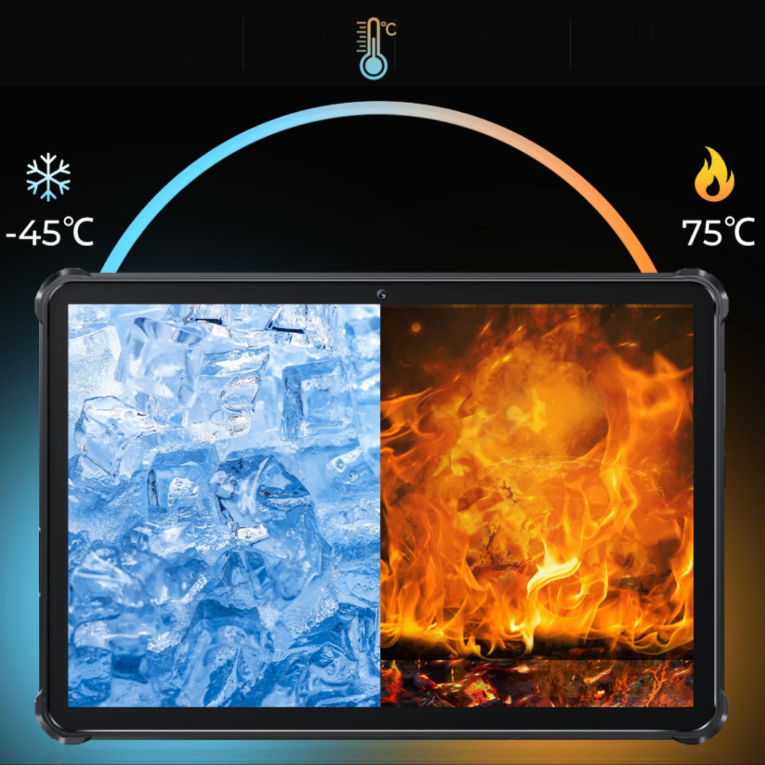 OUKITEL RT8 to pancerny tablet zaprojektowany z myślą o pracy w najbardziej wymagających środowiskach. Certyfikaty IP68 i IP69K gwarantują najwyższy poziom ochrony przed wodą i pyłem, a zgodność z normą MIL-STD-810H potwierdza odporność na upadki i wstrząsy. Dzięki temu urządzenie doskonale sprawdza się w branżach takich jak budownictwo, ratownictwo czy transport ciężki.