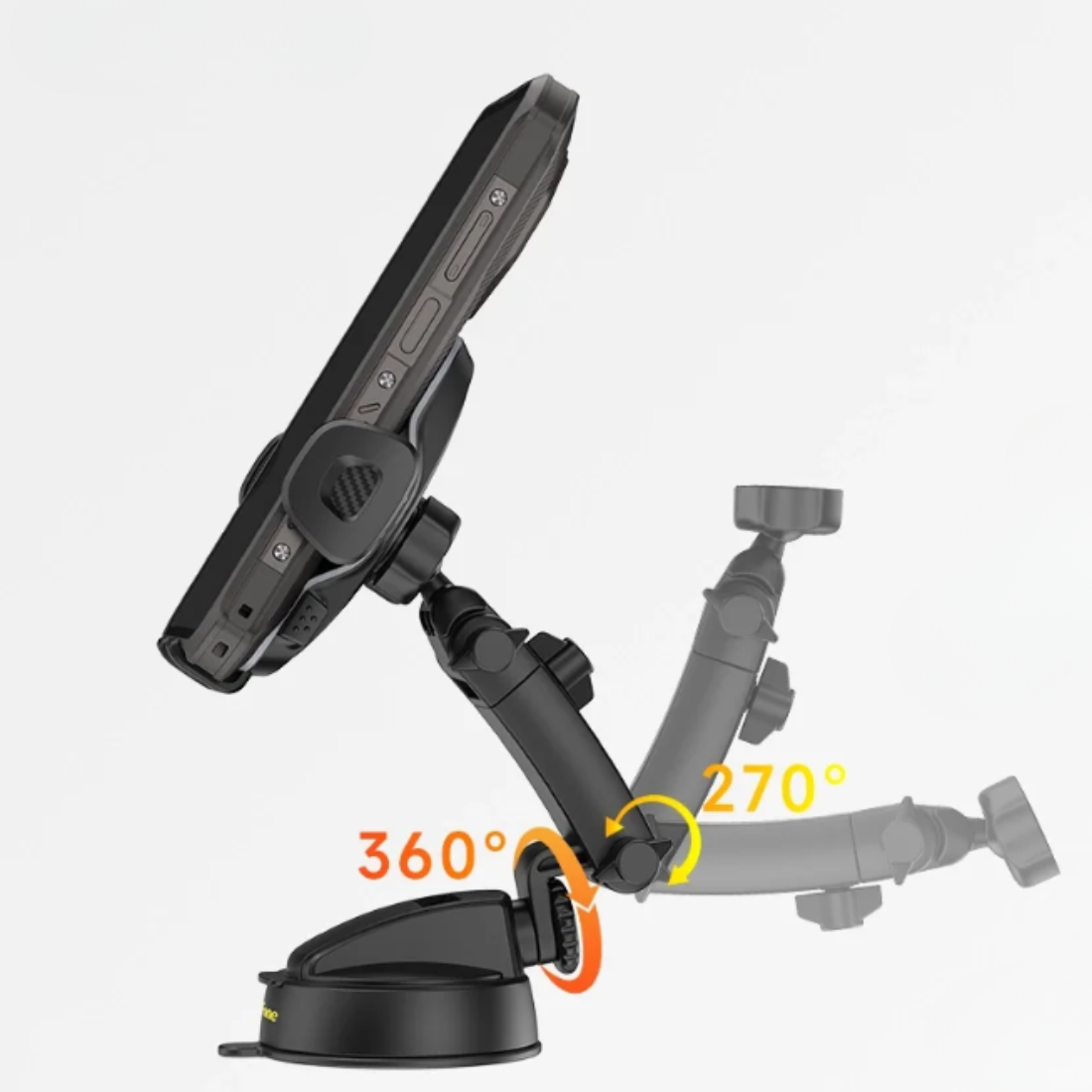 Uchwyt wyposażono w teleskopowe ramię, które umożliwia precyzyjne dopasowanie odległości telefonu. Zakres wysuwu od 10 do 13 centymetrów oraz możliwość pochylenia do 270° pozwalają ustawić ekran dokładnie tam, gdzie jest najbardziej czytelny i wygodny w obsłudze.