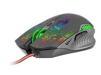 Ciekawa propozycja, jeśli stawiasz na wygodę i unikatowy design. Kolejny członek rodziny Heroes Battle – model Gunner - wyróżnia się korpusem w całości wykończonym matowym plastikiem, dzięki czemu pewniej trzyma się dłoni. Charakterystycznie umieszczone przeźroczystości, przez które przebija się wielokolorowe światło, nadają myszce unikalny wygląd. Zastosowany sensor optyczny, pozwalający na regulacje DPI o rozdzielczościach w zakresie 800/1200/1600/2400 w połączeniu z sześcioma intuicyjnymi przyciskami, tworzą ciekawą propozycję dla początkujących graczy.